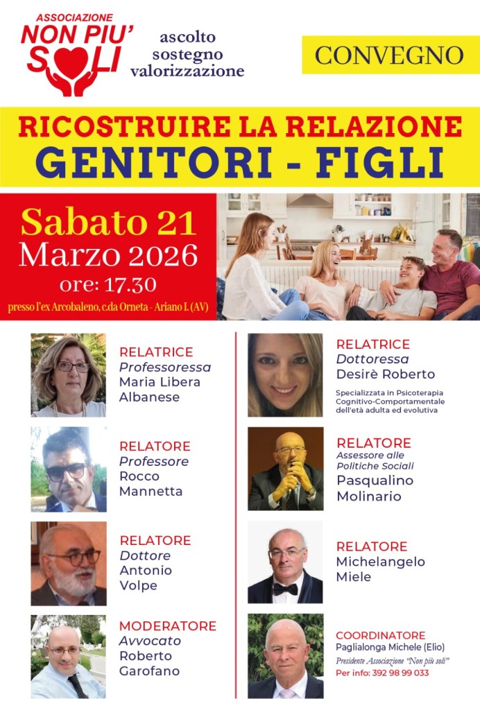 Durante il convegno verranno affrontate tematiche legate alle difficoltà relazionali, ai cambiamenti familiari e alle strategie per ristabilire una comunicazione efficace e rispettosa, con il contributo di professionisti ed esperti del settore.